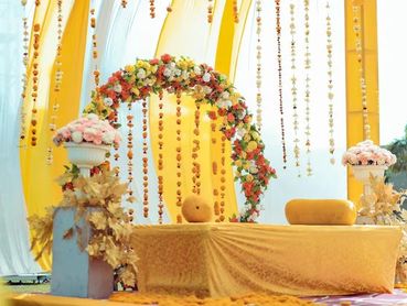 When it comes to the decor, we can create a warm and inviting atmosphere with vibrant colors, floral arrangements, and traditional elements that capture the essence of the haldi ceremony. We will ensure that the venue is adorned with beautiful decorations that reflect your style and cultural traditions.
